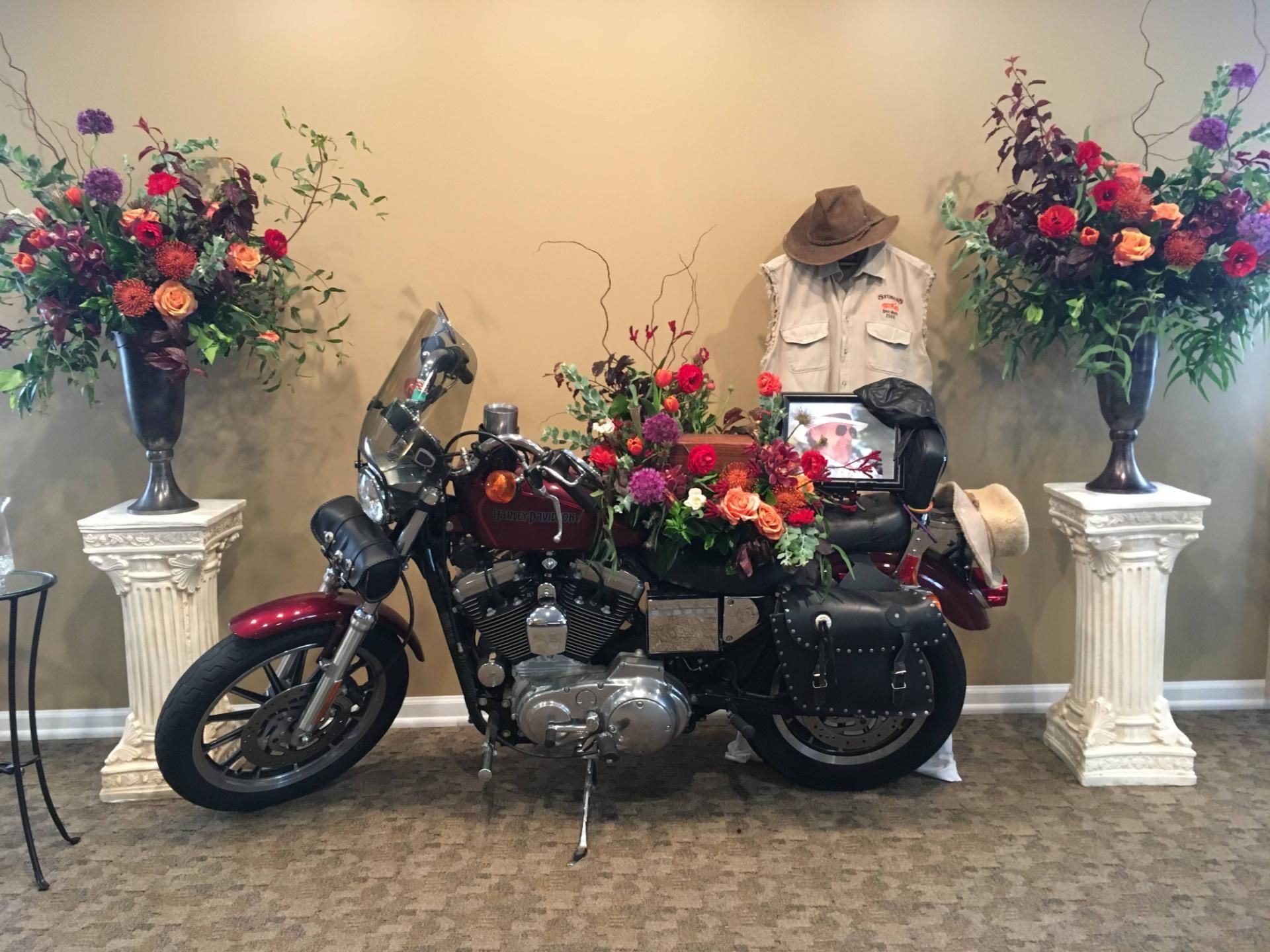 - Bring Memorabilia that tells of the deceased interests or hobbies, i.e. fishing pole, gardening tools, golf clubs, horse saddle. Items can be displayed in or around the urn or casket at the gathering of friends and/or service.